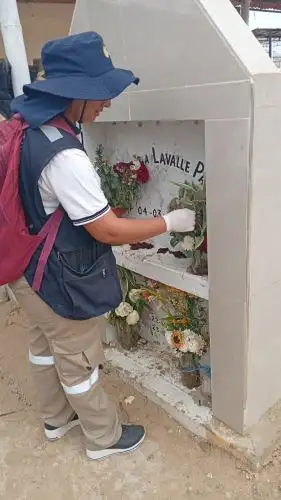 El equipo de salud ejecutó el tratamiento de depósitos con larvicida biológico y la fumigación en los diferentes sectores del cementerio, además de brindar orientación a los trabajadores y visitantes sobre las medidas de prevención del dengue.