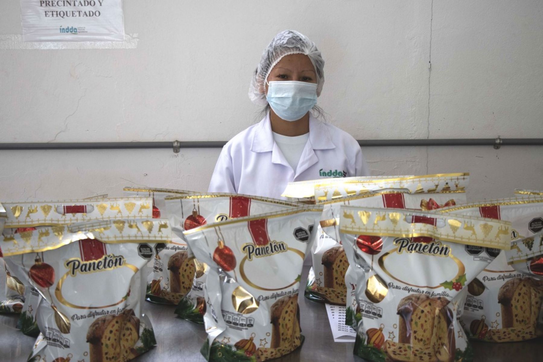 Karina Palomino, encargada de la elaboración de los panetones INDDA, explicó a la Agencia Andina los procesos que se siguen para obtener un producto delicioso, esponjoso y libre de colorantes. Asimismo, señaló que cada día se producen cerca de 300 unidades.