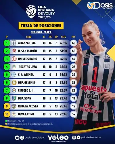 Tras tomarse una pausa por la realización del Sudamericano de Clubes, la Liga Peruana de Vóley regresa este miércoles con los partidos pendientes de la sexta fecha de la segunda fase como el que jugará Universitario ante Deportivo Géminis, en el Polideportivo Lucha Fuentes.