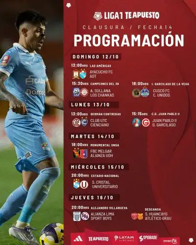 La selección peruana disputará, el 10 de octubre, un partido amistoso por la Fecha FIFA ante Chile y esto hizo que la Liga 1 programe la décima cuarta jornada entre el 12 y 16 de octubre .