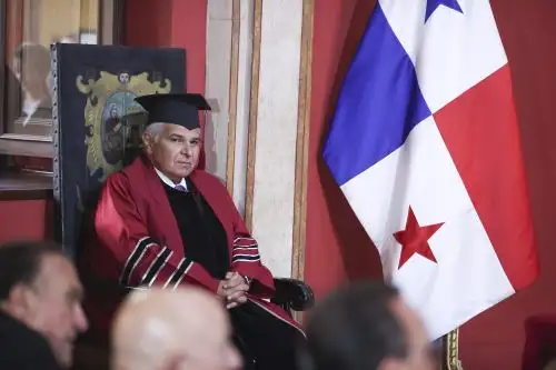"Recibimos con profundo honor y orgullo al magnífico presidente José Raúl Mulino Quinteros en este centro cultural que encarna la esencia de arte, la cultura y la historia de San Marcos. Nos reunimos en esta ceremonia para conferirle el Grado de Doctor Honoris Causa al excelentísimo presidente de Panamá por la huella imborrable que ha dejado en el derecho, por su contribución al fortalecimiento de nuestras naciones y la integración latinoamericana", sostuvo el vicerrector Académico de Pregrado y rector encargado de la UNMSM, Carlos Cabrera Carranza.
