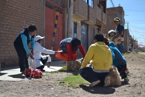 se movilizaron 132 equipos de vacunación de las redes Yunguyo, Chucuito y Huancané para inmunizar a los perros que habitan las localidades fronterizas de Puno del contagio de la rabia.
