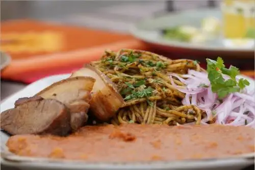 Destacan como platos emblemáticos el bufo o charapana (guiso de menudencias), la sangre de Cristo (ensalada a base de granada, fruto de intenso color rojo), la patita con maní (elaborada con patas de cerdo cocidas y guisadas con maní y acompañadas con papas sancochadas).