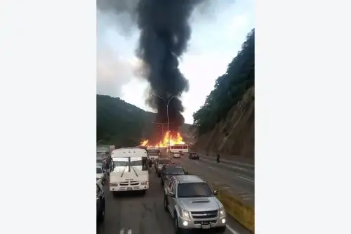 Al menos 8 personas fallecieron este miércoles en un accidente de tránsito, que ocasionó un incendio, en una concurrida autopista que conecta con Caracas, en la que 17 vehículos terminaron involucrados en el siniestro, algunos calcinados, informaron autoridades de Venezuela.