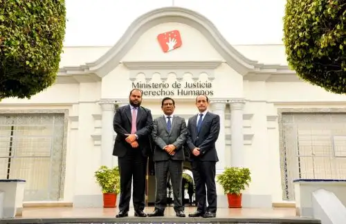 El viceministro de Justicia, Edgar Carpio Marcos, recibió a los magistrados del Tribunal Supremo de Justicia de Venezuela, Ramsis Ghazzauou y Gabriel Calleja, quienes realizan una visita al Perú, con la finalidad de estrechar lazos de hermandad y explicar la situación que vive la población de ese país.