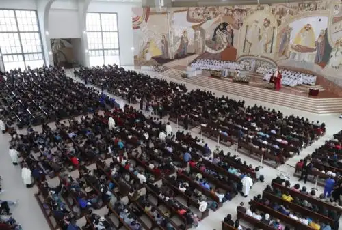 La capacidad de albergue del santuario, levantado sobre un área de 6,000 metros cuadrados, es de 3,000 personas, mientras que el anfiteatro cuenta con capacidad para 20,000 fieles.