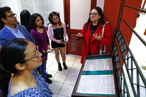 En el Centro de Documentación, los estudiantes de la Universidad Antonio Ruiz de Montoya y de la Universidad Santiago Antúnez de Mayolo de Huaraz conocieron el trabajo que se realiza en la Hemeroteca y Conservación Digital para preservar, conservar y resguardar la memoria documental del país.