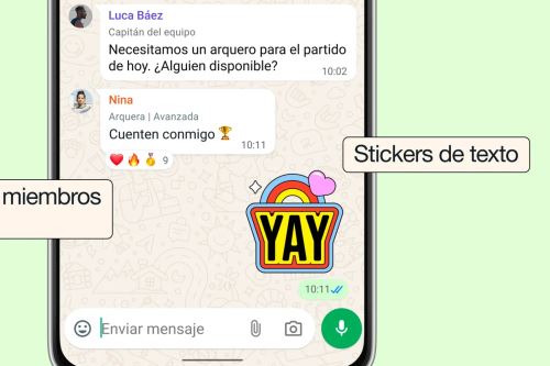 mejorar la experiencia en los chats grupales, como el envío de archivos de hasta 2 GB, notas de voz, stickers, etiquetas personalizadas y más.