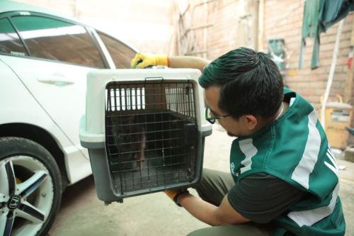 El personal del Serfor, con el apoyo de la dirección de Medio Ambiente de la Policía Nacional del Perú, provistos de equipo especializado como mallas, guantes y otros, rescataron al pequeño zorro y lo colocaron en un kennel que es una caja transportadora especial para animales.
