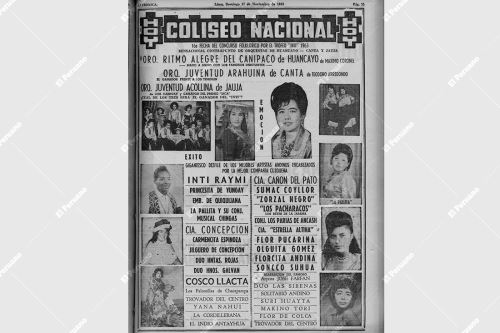 Flor Pucarina, Pastorita Huaracina, Picaflor de los Andes eran los artistas estelares del coliseo.