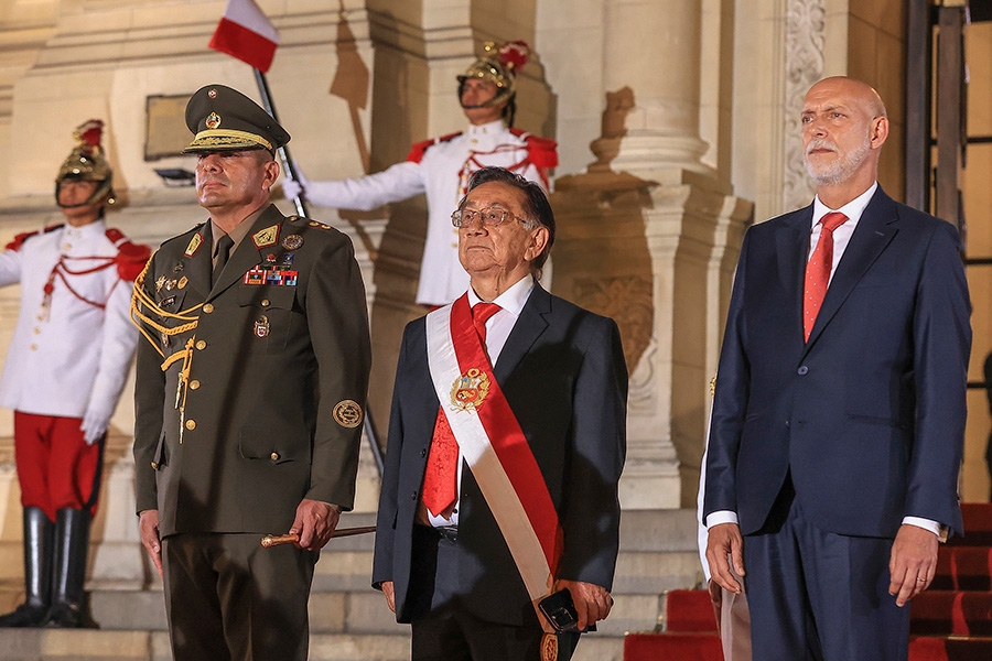 Presidente Balcázar llega a Palacio de Gobierno y es recibido con honores
