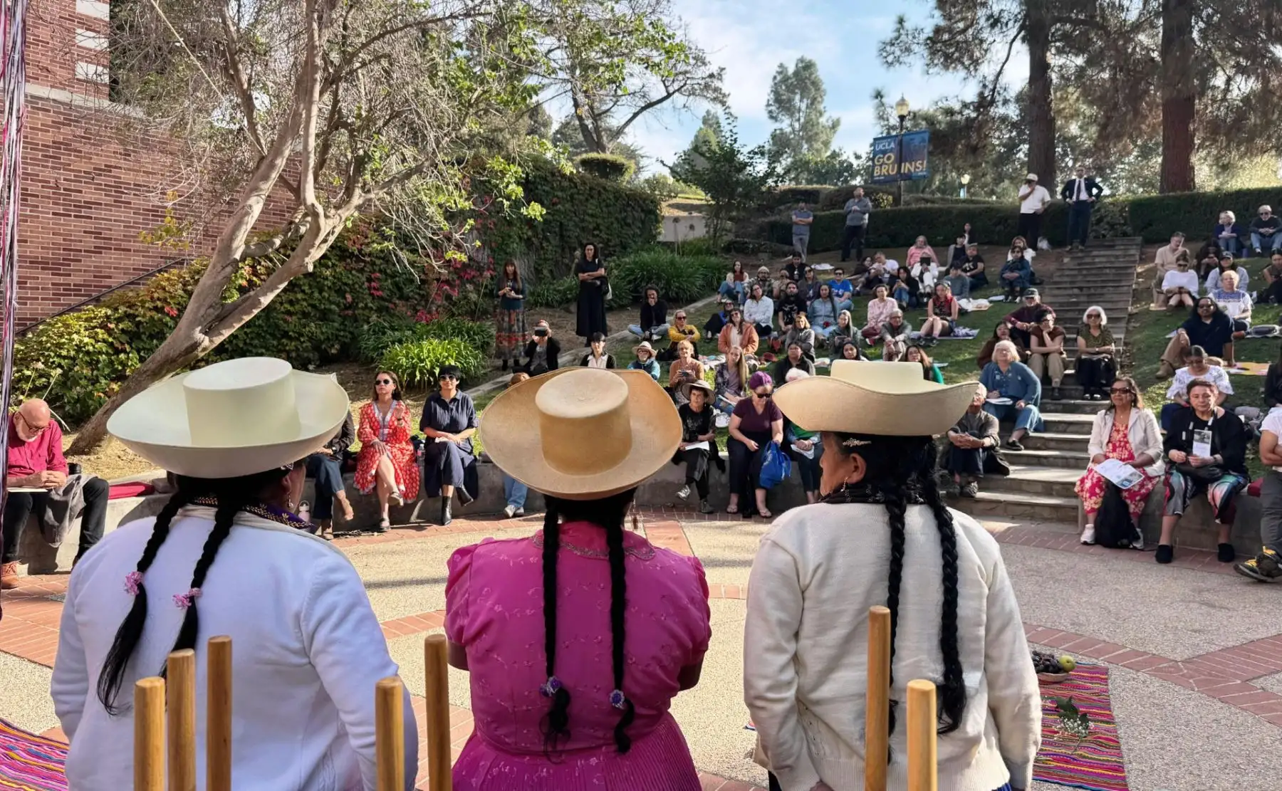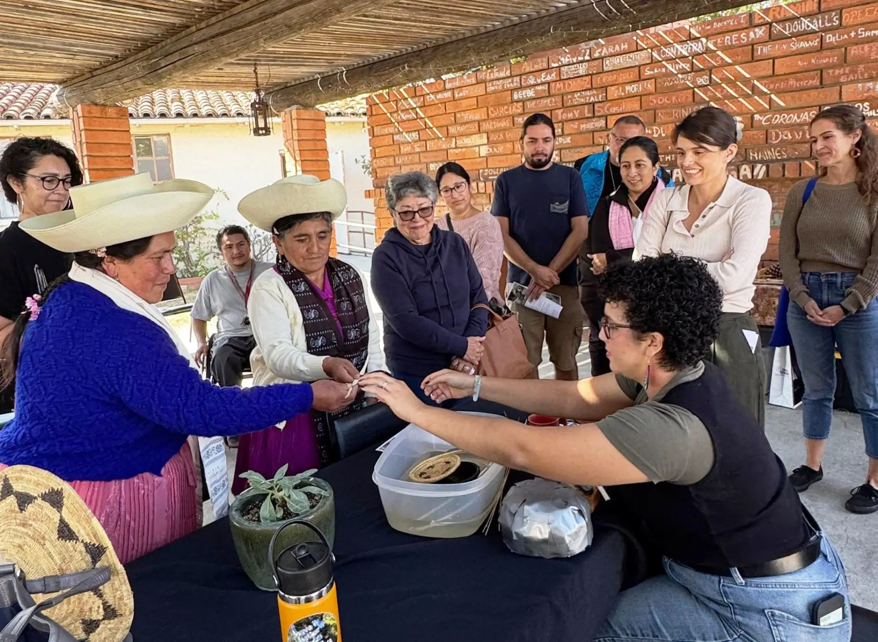 Upon their arrival in Los Angeles, the Cajamarca delegation was welcomed by members of the Tongva/Gabrielino Indigenous communities, with whom they engaged in a cultural exchange. The artisans were also invited to lead workshops and classes for UCLA students, emphasizing the academic and cultural relevance of traditional Andean weaving in university settings.