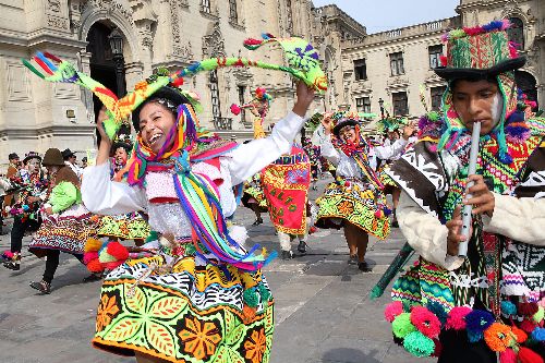 Para ello, diversas comparsas de carnaval de la región, integrada por un gran número de hombres y mujeres, llegaron a la capital y desfilaron por el Patio de Honor entonando canciones tradicionales y desbordando la alegría que caracteriza esta festividad.