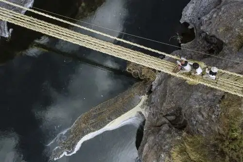 The bridge, made of fibers obtained from q'oya, a straw-like plant, was first built about 600 years ago.