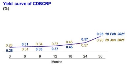 has reported that —as of February 10— the yield curve of its Certificates of Deposit (CD BCRP) showed a performance similar to that observed at the end of January in all bonds.