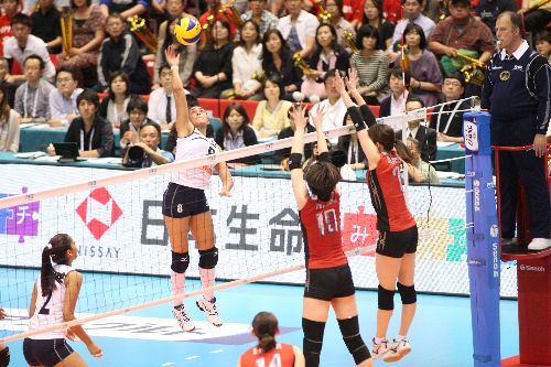 Peru took the first two points of the third set, but in the final spike Japan won 25-18.