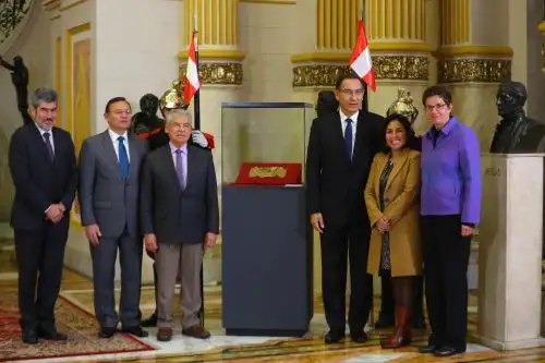 President Martin Vizcarra on Monday took part in the presentation ceremony of Sican Mask —an emblematic piece of the Lambayeque (Sican) Culture that Germany has returned as a sign of cooperation to combat illicit trafficking in cultural property.