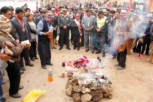 At the site, the traditional Mother Earth tribute paying ceremony —also known as Pachamama— took place.