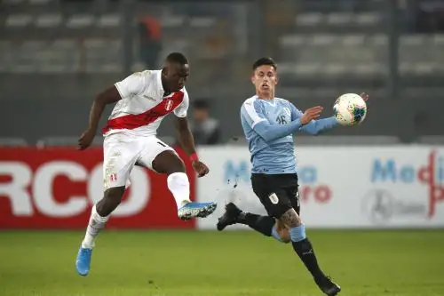 Uruguay: Martin Campaña, Martin Caceres, Jose Maria Gimenez, Diego Godin, Diego Laxalt, Federico Valverde, Matias Vecino, Rodrigo Bentancur, Maximiliano Gomez, Brian Rodríguez, and Brian Lozano. Coach: Oscar Tabarez.