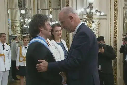 During the ceremony, the Peruvian government official congratulated Argentina's new President and wished him every success in his new duties.