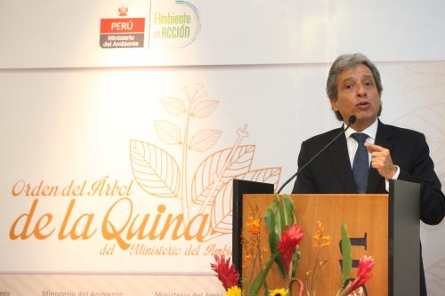 LIMA,PERÚ-AGOSTO 18.El ministro del Ambiente, Manuel Pulgar Vidal condecora con el "Orden del Árbol de la Quinua" a destacados gestores de la conservación.Foto: ANDINA/Oscar Farje Gomero.