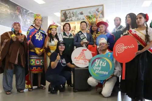 Domestic and foreign tourists who arrived on Wednesday morning at Arequipa's airport were welcomed with folk dances of Peru and the traditional "Offering to the Earth" ceremony.